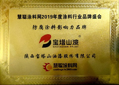 第十六届2020年度涂料行业影响力品牌颁奖盛典活动中荣获”防腐涂料影响力品牌